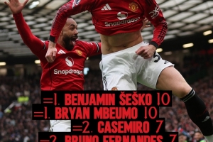 舍什科、姆伯莫均10球,曼聯官推發問:誰將贏得隊內射手王之爭