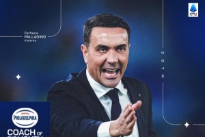 帕拉迪諾2月份帶領(lǐng)亞特蘭大參加4場意甲比賽,戰(zhàn)績3勝1平,意甲官方社媒曬出海報,確認他當(dāng)選2月份最佳教練。