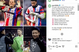 體育資訊3月17日訊 據(jù)《RMC》報道,拜仁16歲門將普雷斯科特幾周前還是在諾伊爾身后撿球的球童,如今他有望成為球隊(duì)隊(duì)史出場第二年輕球員,僅次于萬納爾。