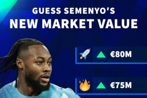 德轉預熱塞梅尼奧身價變化:最高8000萬歐元,最低6000萬歐元
