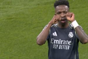點(diǎn)射破門(mén),維尼修斯做哭臉慶祝動(dòng)作、和角旗桿擺pose
