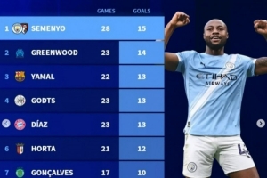 本賽季前十聯(lián)賽邊鋒進球榜:塞梅尼奧居首,格林伍德、亞馬爾前三