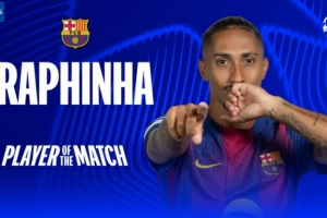 2球2助攻!歐冠官方:拉菲尼亞當選巴薩7-2紐卡全場最佳