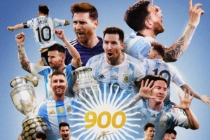 體育資訊3月19日訊 美洲杯1/8決賽次回合,邁阿密國際1-1戰平納什維爾,梅西達成生涯900進球里程碑。