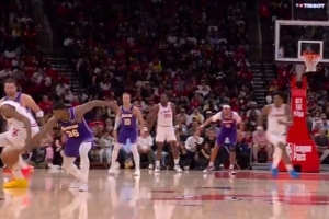 體育資訊3月19日訊 NBA常規賽,湖人半場67-55領先火箭。