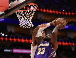 本場比賽,湖人球星詹姆斯上場34分鐘,14投13中得到30分5籃板2助攻1搶斷1蓋帽。