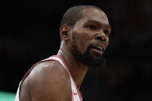 此役,火箭球星杜蘭特上場(chǎng)37分41秒11投7中,三分5中2、罰球3中2,得到18分6籃板4助攻2搶斷。