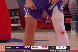 這其實是“拼命勛章”。東契奇從歐洲聯賽時期(皇馬、斯洛文尼亞國家隊)就開始愛這樣打球,膝蓋老疤就是那時候留下的。從獨行俠轉戰湖人,他的風格依然沒有改變。