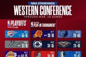 ??最新排名:西部大亂斗湖人穩第3 狼力壓火箭掘金 勇士跌第10