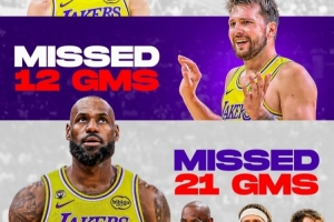 里夫斯缺陣26場/詹姆斯21場/東契奇12場!湖媒:湖人仍是頂級強隊