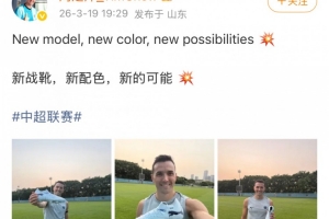 體育資訊3月19日訊 中超第3輪,深圳新鵬城將在客場對戰青島西海岸。今日深圳中場周定洋更新社媒,曬出與新球鞋的合影。