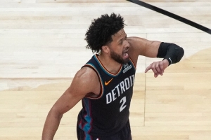 坎寧安本賽季代表活塞出戰(zhàn)61場(chǎng)比賽,場(chǎng)均24.5分2.6板9.9助。