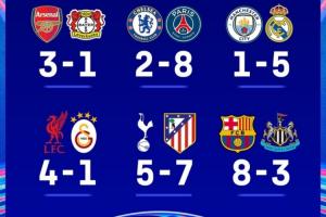 至此,英超本賽季參加歐戰的九支球隊在本輪后的命運也均已揭曉,其中五隊挺進下一輪,出局的四隊均是歐冠賽場折戟。