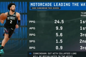 >>活塞官方:坎寧安患有左側肺氣胸將在兩周后重新接受復查" />