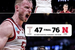 體育資訊3月20日訊 NCAA瘋?cè)纵啠瑑?nèi)布拉斯加大學(xué)76-47擊敗特洛伊大學(xué)晉級(jí)。