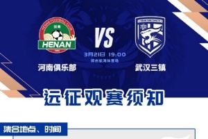 3月21日,武漢三鎮在中超第3輪客場對河南,本次客場遠征觀賽須知