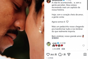 體育資訊3月21日訊 米利唐與妻子泰納·卡斯特羅聯合更新社媒動態,宣布泰納·卡斯特羅懷孕。