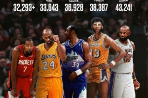 談到自己生涯總得分超越邁克爾·喬丹,上升至NBA歷史第五,杜蘭特笑著說(shuō)道:“我還有四人需要去超越。”