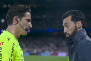 轉播方DAZN捕捉到了賽后皇馬主帥阿韋洛亞走上前向主裁判表達不滿,二人之間的對話。