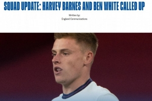 28歲的哈維·巴恩斯此前在2020年代表英格蘭隊有過1次出場,28歲的本·懷特曾有過4次出場,這也是自2022年入選英格蘭世界杯名單后,時隔近4年這名球員重返英格蘭隊。