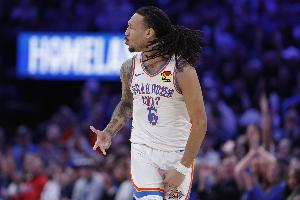 體育資訊3月24日訊 NBA常規賽,雷霆半場65-43領先76人。