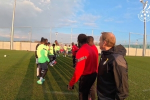 曼城前鋒塞梅尼奧來到加納國家隊(duì)報到,隊(duì)友們列成兩排,以拍打的方式對他表示祝賀。