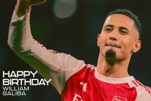體育資訊3月24日訊 今天是阿森納中衛(wèi)薩利巴的25歲生日,阿森納官方社媒為他送上祝福。
