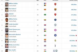 全球中衛身價排名:昔日第一巴斯托尼跌第四,薩利巴9000萬世一衛