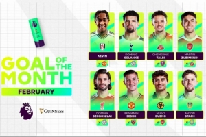英超2月最佳進球候選