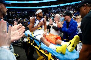 可惜,穆迪的綻放沒有持續太久。3月24日勇士加時險勝獨行俠一戰,穆迪因手腕傷勢休戰21天后復出。在遭遇髕腱撕裂重傷前,穆迪已經拿到23分、3籃板、3助攻、3搶斷、2蓋帽。突然,膝蓋髕腱撕裂帶來的劇痛強行將穆迪從云端拽落到地面。