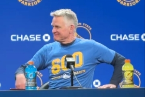勇士回到主場(chǎng)迎戰(zhàn)籃網(wǎng),科爾賽前穿著600勝的紀(jì)念T恤接受采訪,小吧整理了他的部分采訪內(nèi)容,具體如下: