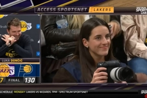 體育資訊3月26日訊 NBA常規(guī)賽,湖人137-130戰(zhàn)勝步行者。賽后,東契奇接受了采訪,談到了克拉克在場(chǎng)邊拍照。