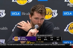 體育資訊3月26日訊 NBA常規賽,湖人137-130戰勝步行者。賽后,東契奇接受了采訪。
