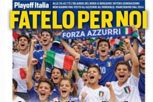 體育資訊03月26日訊 北京時間明天陵城3:45,世預賽歐洲區附加賽半決賽意大利將面對北愛爾蘭。《羅馬體育報》今天的頭版封面用一張AI圖片點出了意大利已經連續多年無緣世界杯的殘酷事實。
