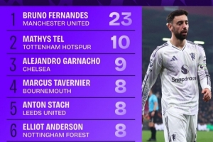 3月英超球員創(chuàng)造機會排行:B費23次居首,特爾、加納喬列二三位