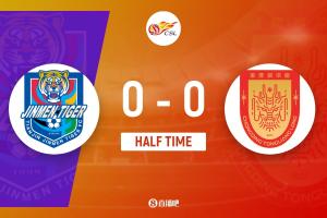 上半場補時5分鐘。半場戰罷,天津津門虎0-0重慶銅梁龍。