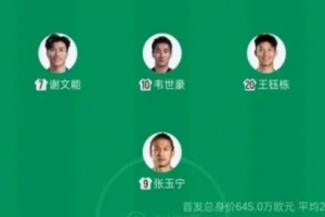 國足vs庫拉索的熱身賽,謝文能、韋世豪、王鈺棟以及張玉寧組成攻擊線四人組。在中超前三輪比賽中,謝文能打入2球,韋世豪打入1球,王鈺棟和張玉寧各打入3球,兩人也在射手榜并列第一位。