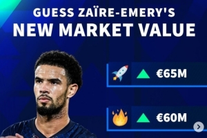 體育資訊3月27日訊 德轉即將更新法甲球員身價,官方社媒預熱埃梅里身價變化,最高漲至6500萬歐。