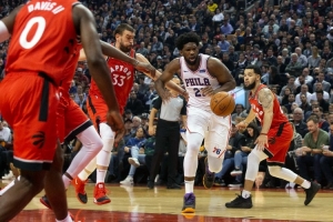 2019年東部半決賽,恩比德場均17.6分8.7籃板3.3助攻,投籃命中率僅37%。