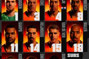 1-維爾布魯根、3-范黑克、4-范戴克、8-赫拉芬貝赫、11-加克波、14-賴(lài)因德斯、15-范德芬、18-馬倫、20-庫(kù)普梅納斯、21-斯米特、22-鄧弗里斯