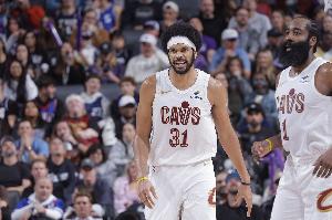 本場比賽阿倫時(shí)隔10場迎來復(fù)出,騎士本場首發(fā)為:哈登、米切爾、梅里爾、莫布里、阿倫。