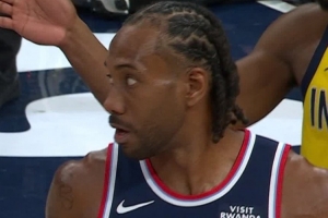 比賽最后時刻,倫納德中投準(zhǔn)絕殺;據(jù)統(tǒng)計(jì),這是倫納德生涯(包括季后賽)第12次在末節(jié)或加時賽最后5秒投中制勝球。