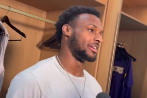 賽后布朗尼接受了采訪,談及本場接到父親的助攻,布朗尼分享了一則他和勒布朗單挑的趣聞。