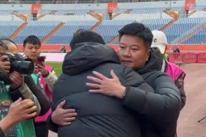 體育資訊3月7日訊 今天泰山主場對陣遼寧鐵人的中超首輪比賽開賽前,兩隊主帥韓鵬和李金羽友好互動。