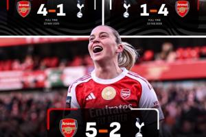 體育資訊03月29日訊 英女足第19輪北倫敦德比,阿森納女足5-2輕取熱刺女足。本賽季,阿森納男女足在北倫敦德比中展現出統治級表現,雙雙取得大勝,成為德比戰的絕對主角。
