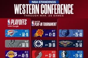 至此東西部無緣季后賽/附加賽的球隊分別為: