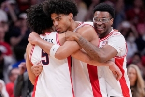 體育資訊3月29日訊 NCAA瘋?cè)鲄^(qū)決賽,亞利桑那大學(xué)79-64擊敗普渡大學(xué),殺入終極四強(qiáng)。