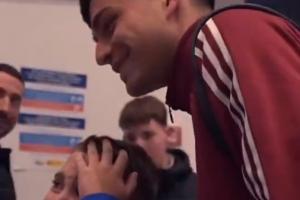 見(jiàn)到偶像太激動(dòng)??與佩德里見(jiàn)面時(shí),一名小球迷當(dāng)場(chǎng)哭崩不能自已