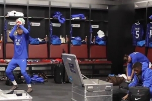 體育資訊3月31日訊 今日,法國足球國家隊官方發(fā)布了一個皇馬球星姆巴佩在更衣室里“投籃”的視頻。