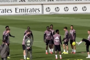 體育資訊3月6日訊 北京時間明天凌晨4時,西甲第27輪皇馬將在客場對戰塞爾塔。賽前記者Miguel Angel Diaz在社媒曬出皇馬賽前訓練的照片,此前因牙疼缺陣的卡馬文加出現在訓練場上。